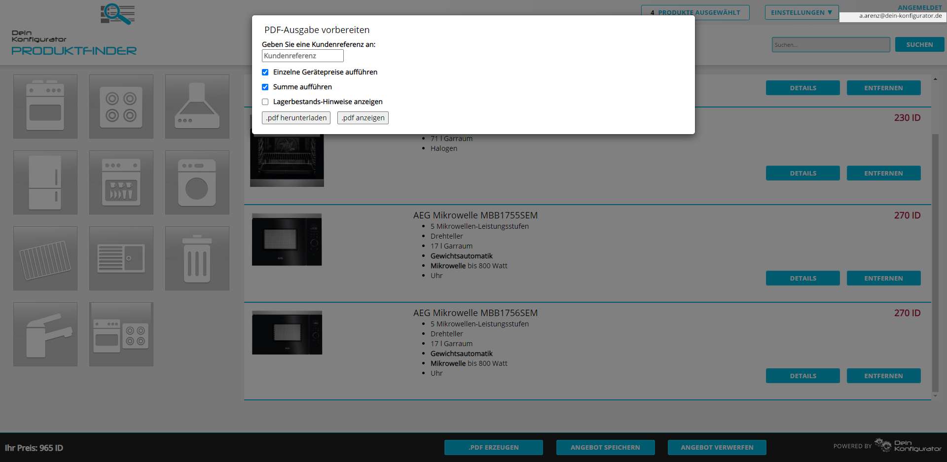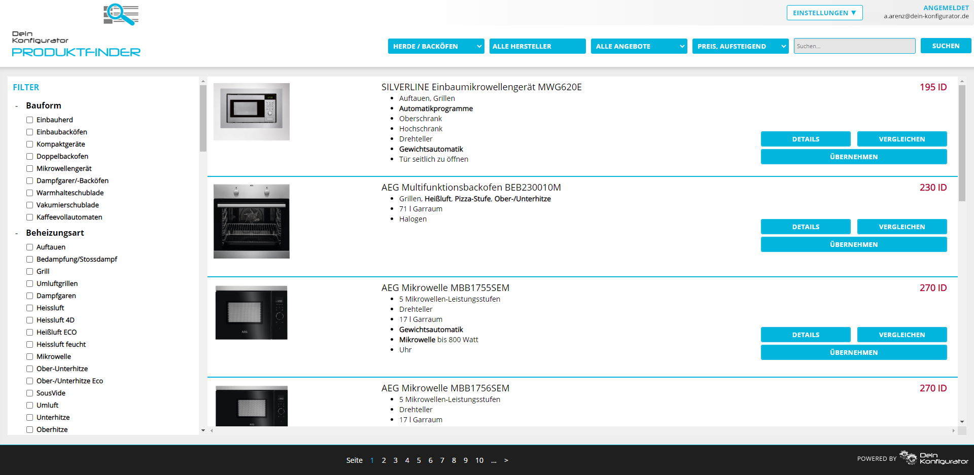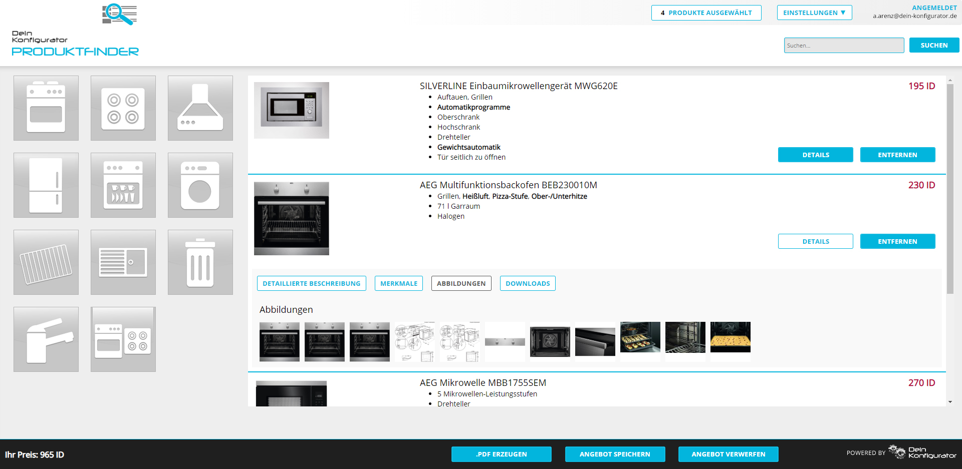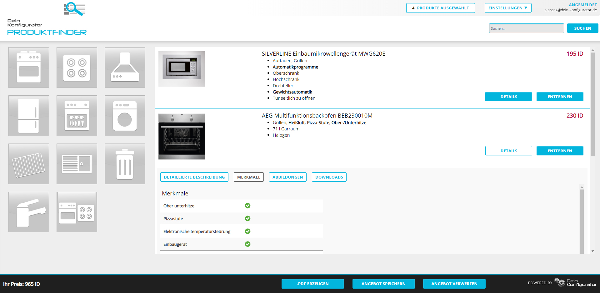 Küchen-Navigator, Polsterplaner oder Produktfinder