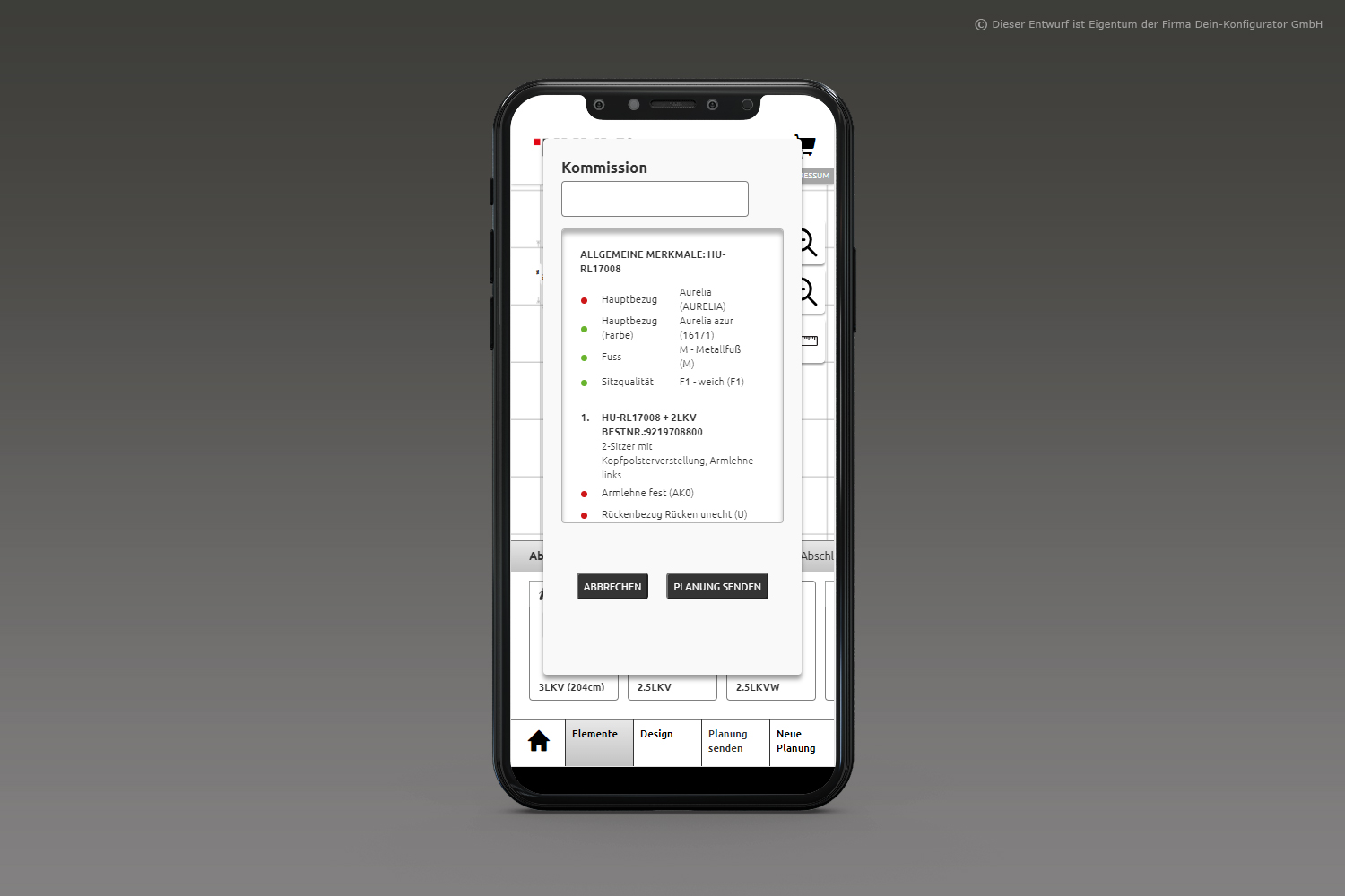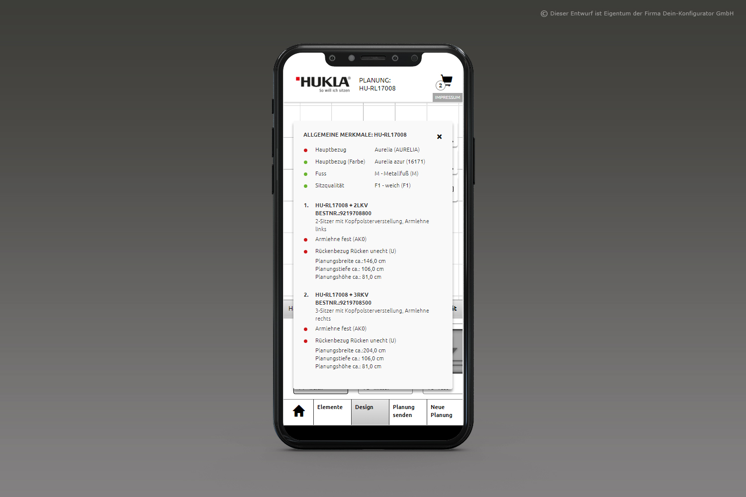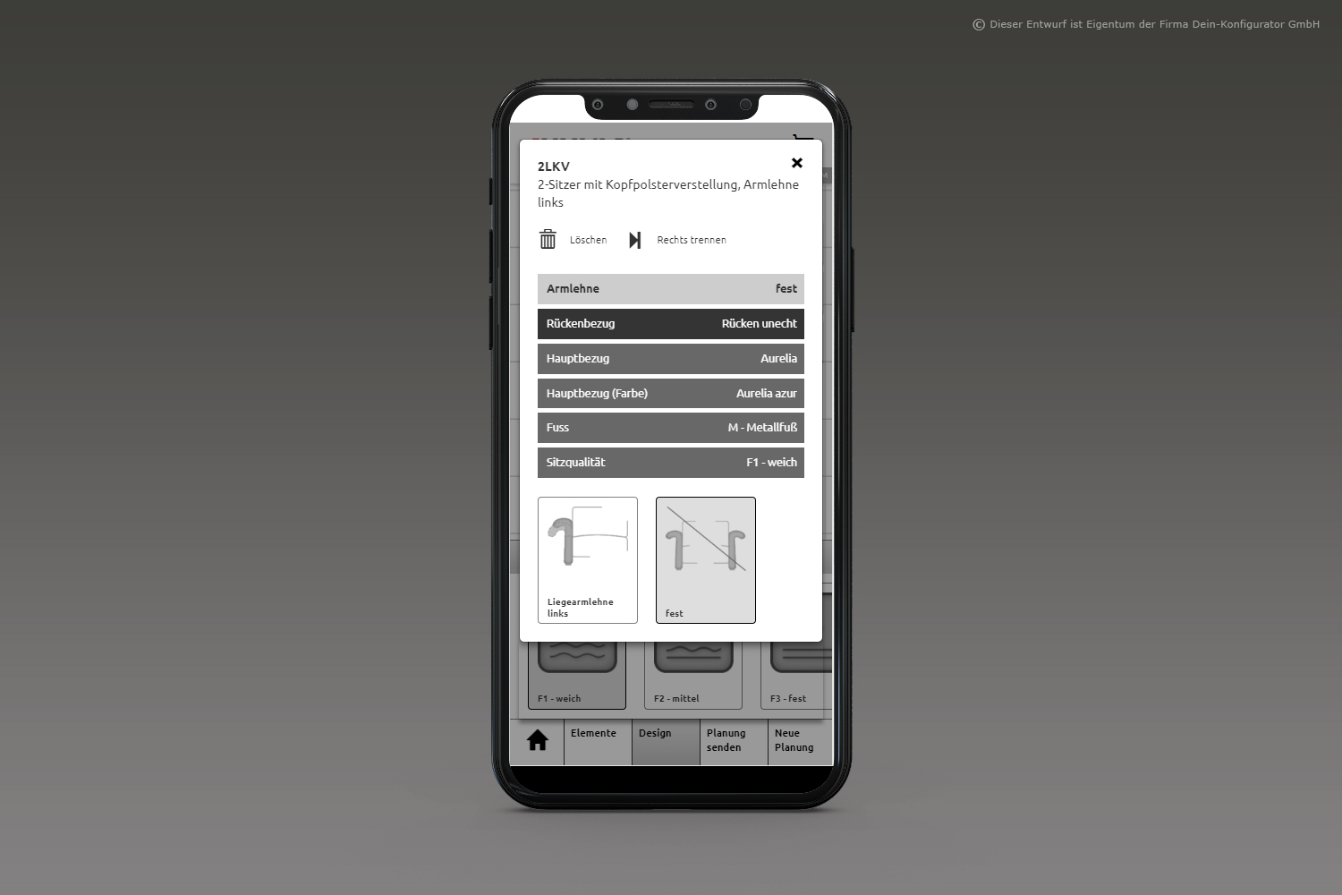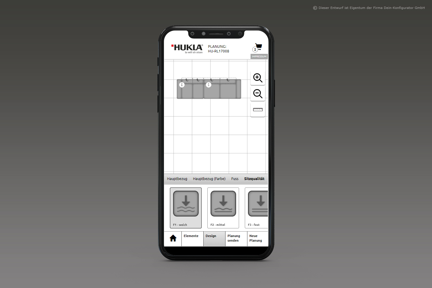 Man nehme: Form, Funktion, Stoff oder Leder– fertig ist das individuelle Polstermöbel. KundInnen sehen beim Planen alle möglichen Funktionen aller Lieferanten mittels Videos, Zeichnungen und Texten; sie erhalten eine Warenkunde der Stoff- und Lederklassen und den direkten Preisvergleich über alle Preisgruppen bzw. die Preise von Mehrausstattungen. Das so entstandene Möbelstück wird im bebilderten Warenkorb festgehalten und als 2D-Bild wie auch als 3D-Bild dargestellt.