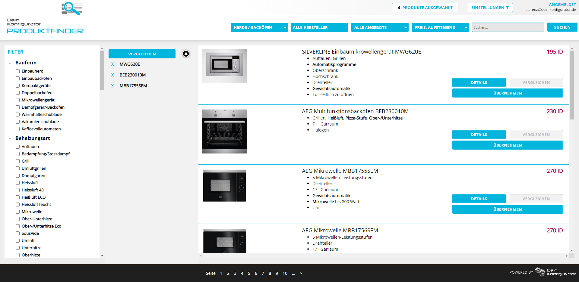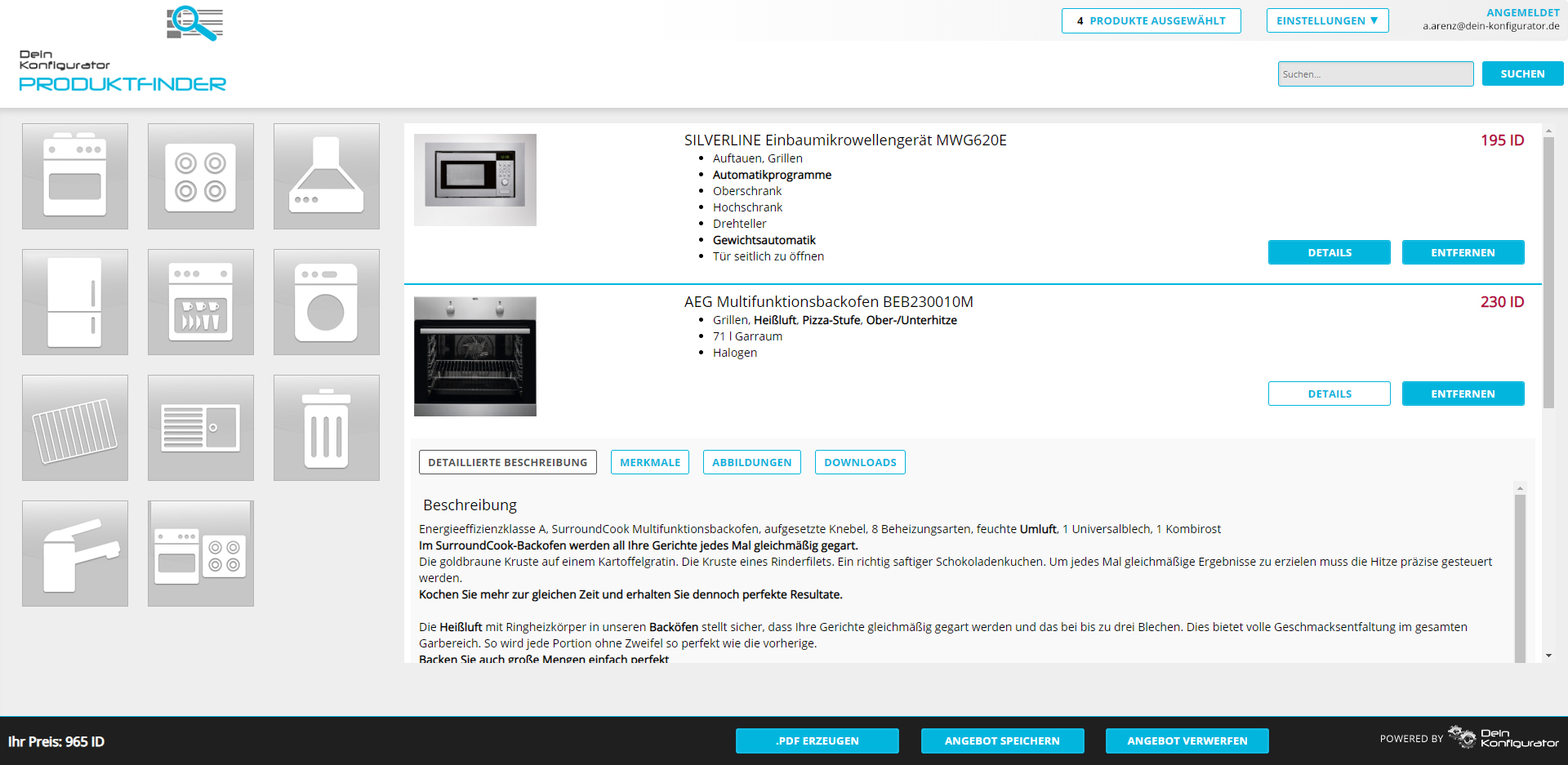 Küchen-Navigator, Polsterplaner oder Produktfinder