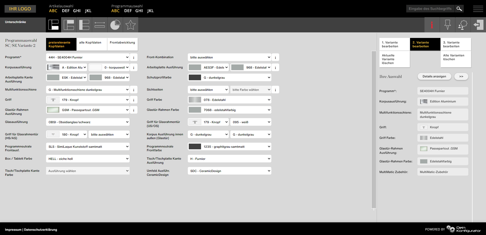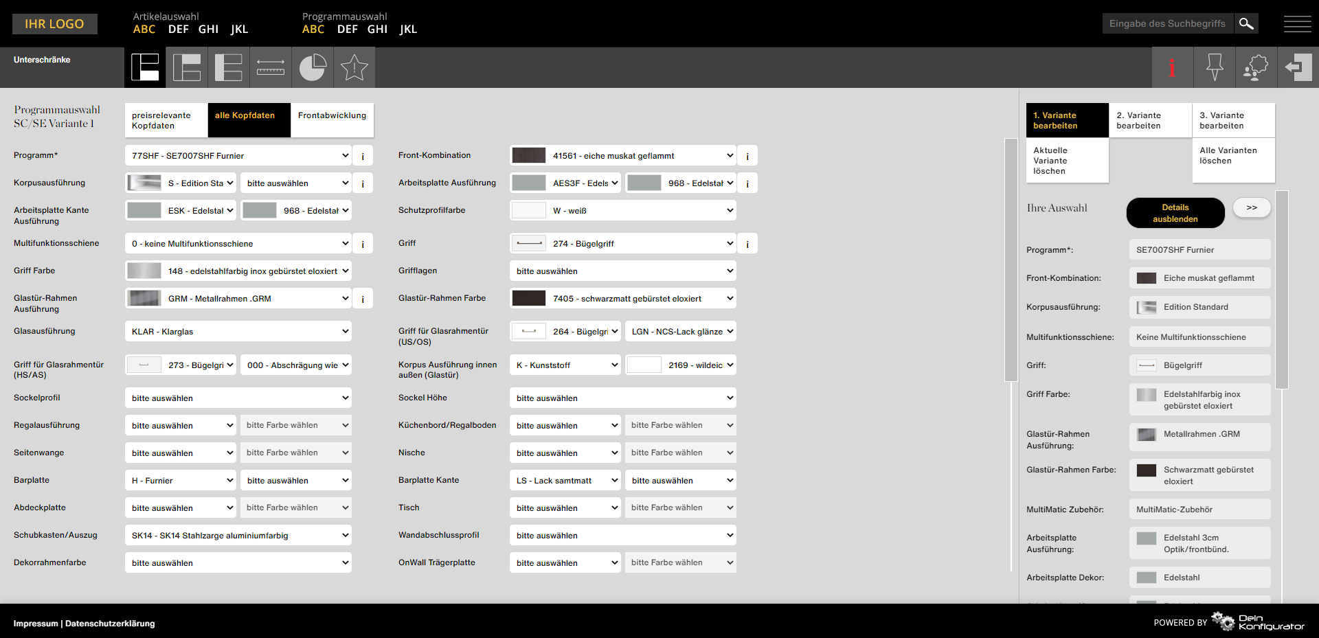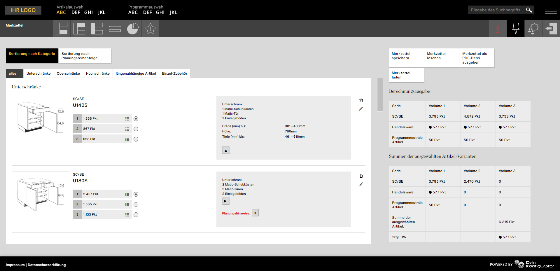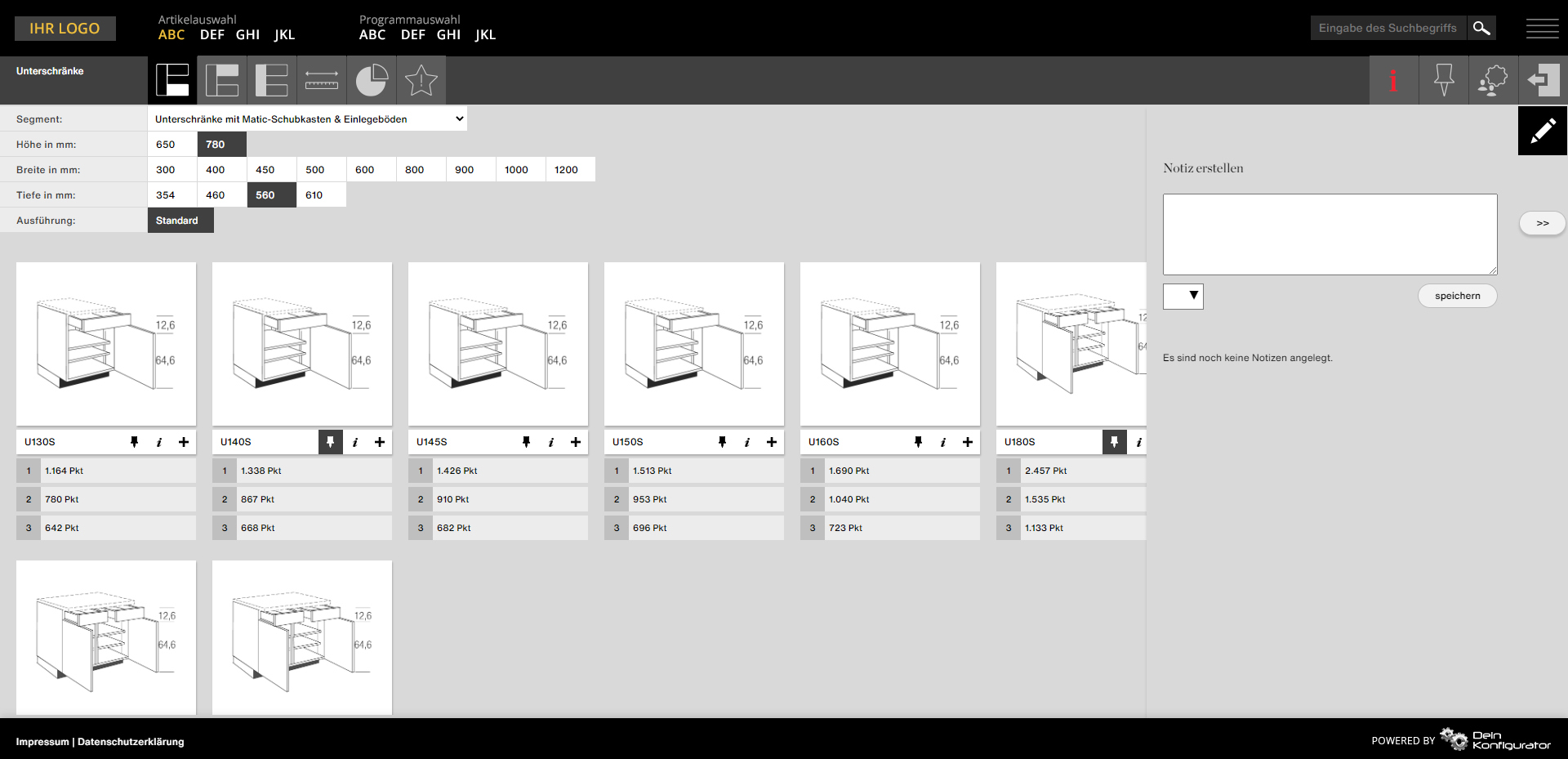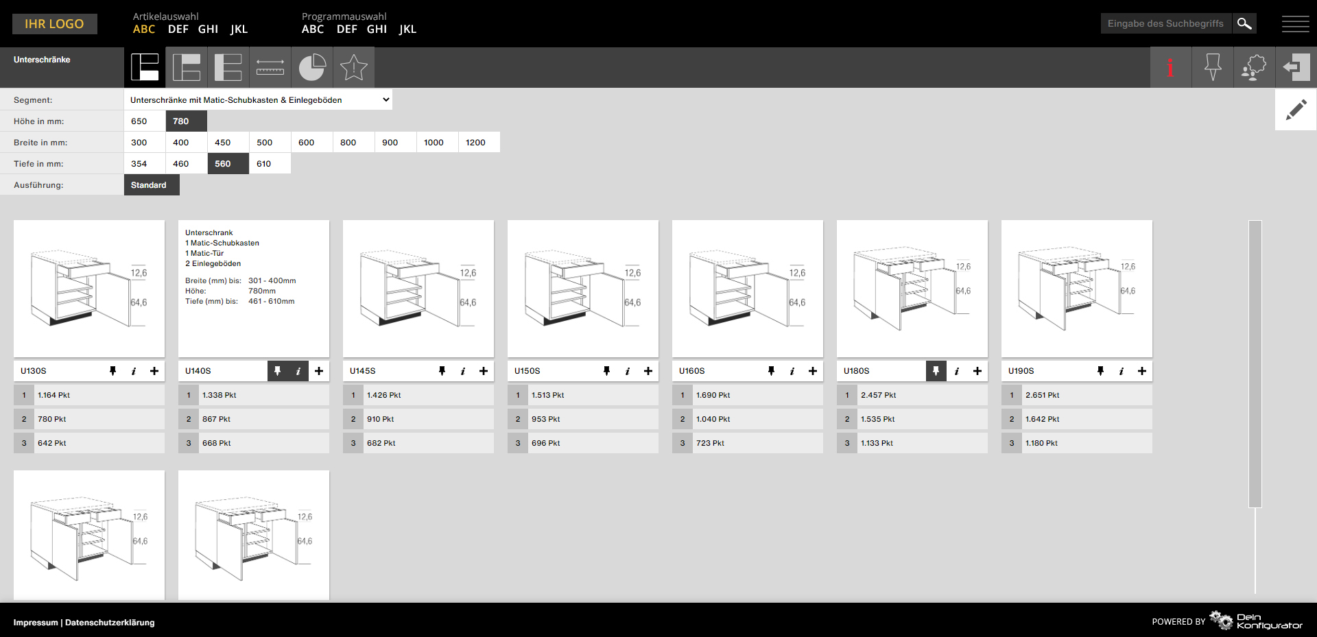 - Individuelle Konfigurationsoptionen und Einstellungen pro Partner, z.B. variable Anzeige der Küchen nach Punkten, EK- oder VK-Preisen